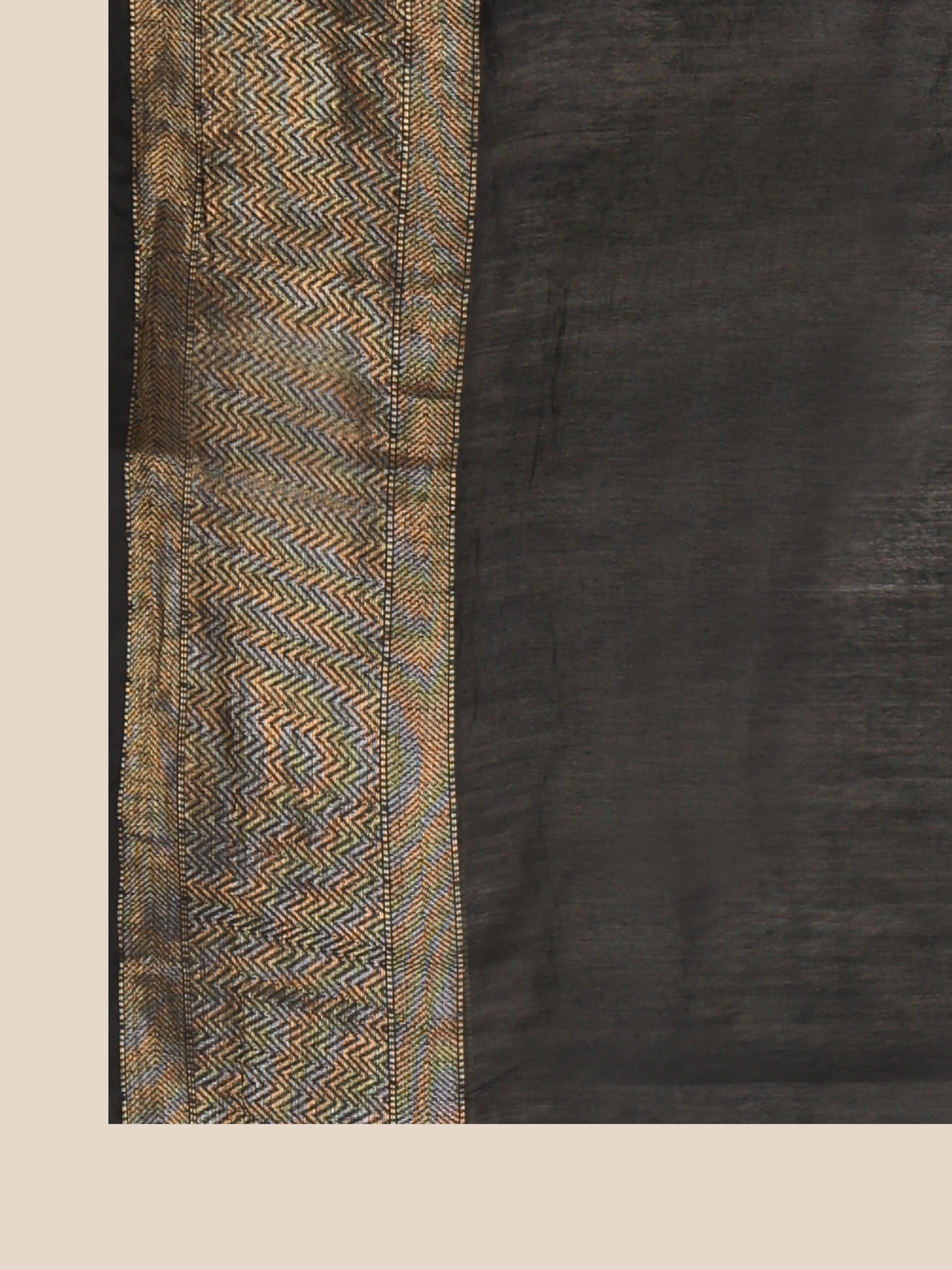 Luxurious black semi silk fabric with a smooth texture. Perfect for sarees, dresses, and festive wear, offering elegance and comfort.