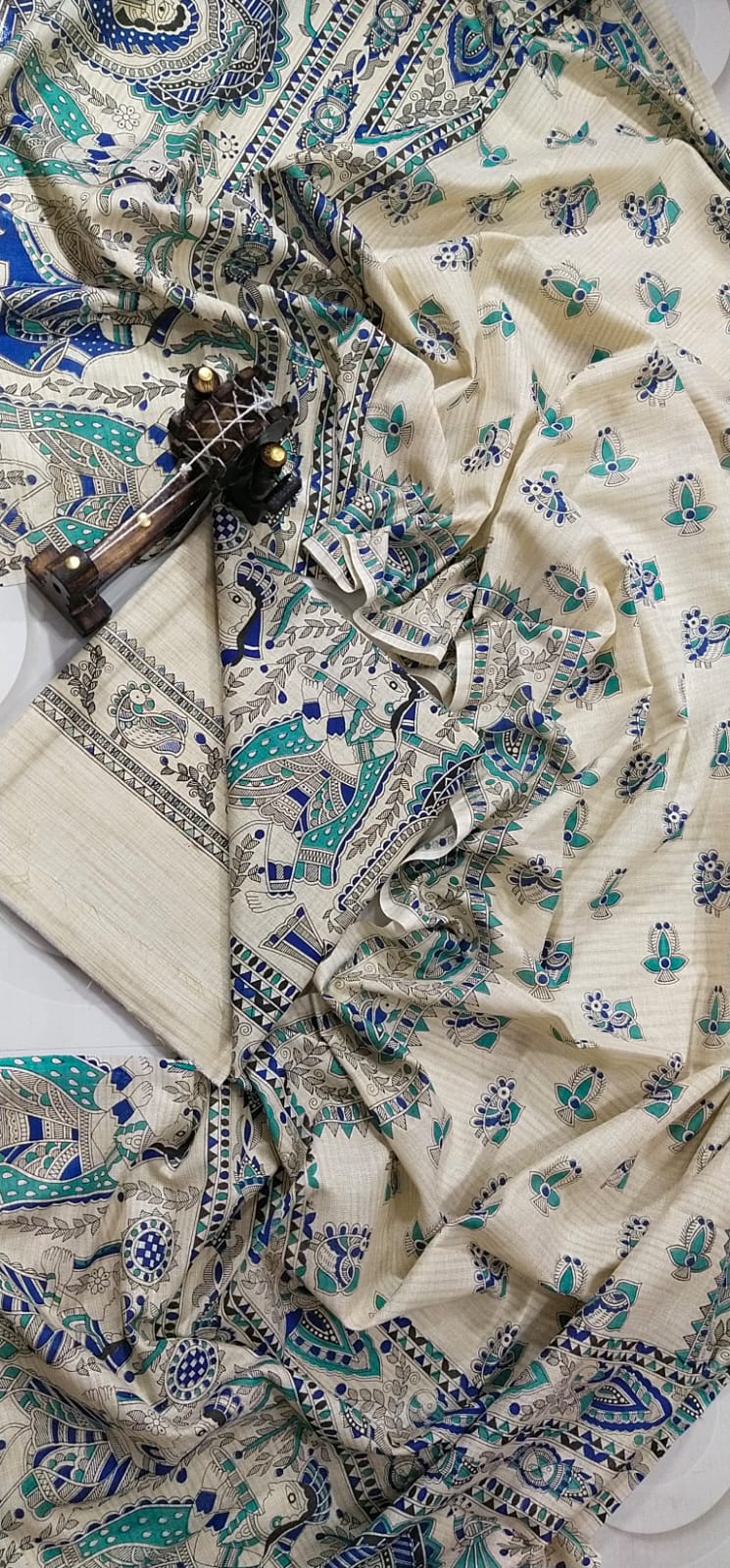 COTTON SILK HAND PRINTED UNSTITCHED DRESS MATERIAL WITH DUPATTAS