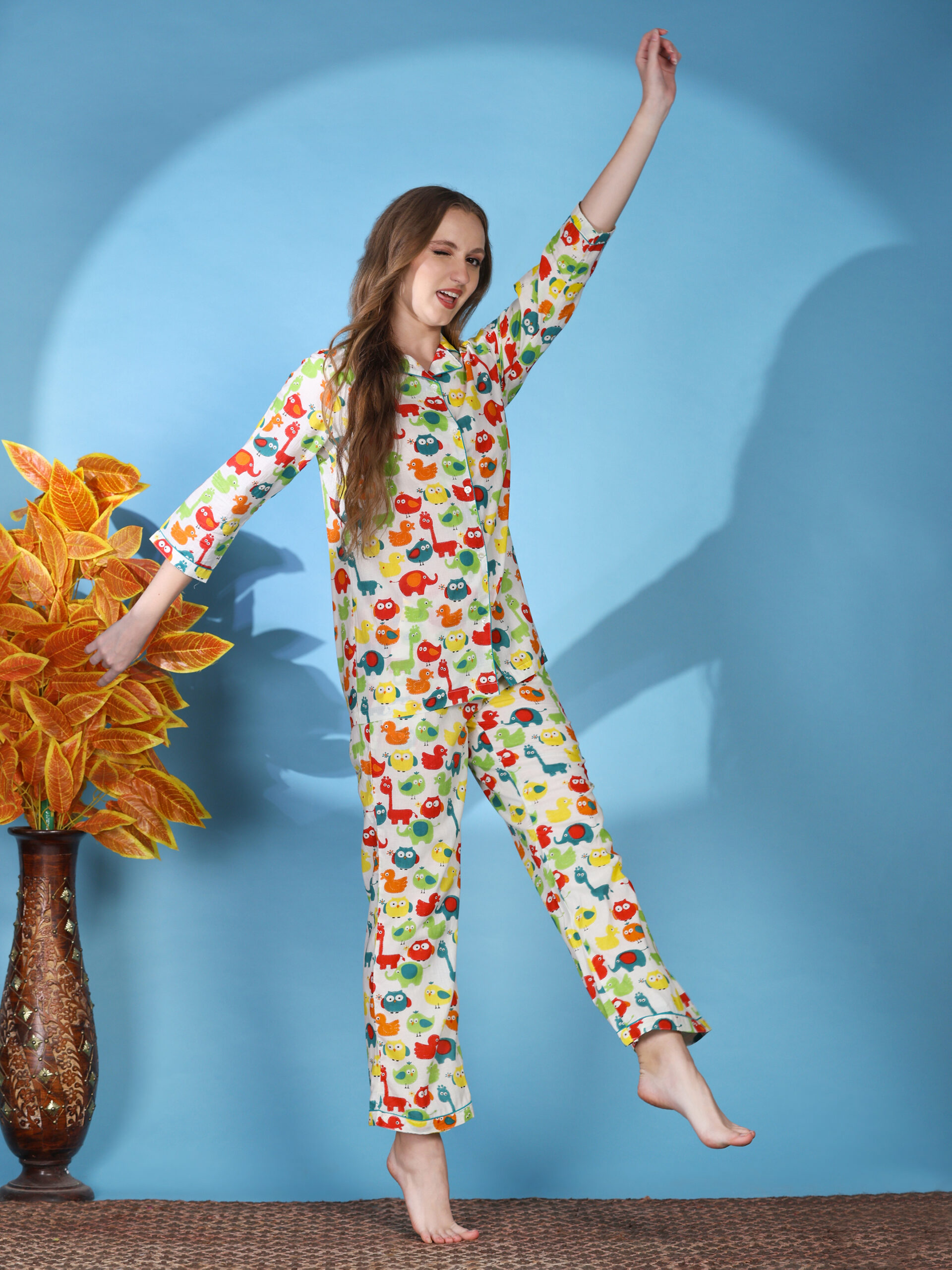 Stylish printed cotton coord set in multicolour tones, perfect for everyday comfort with a regular fit.