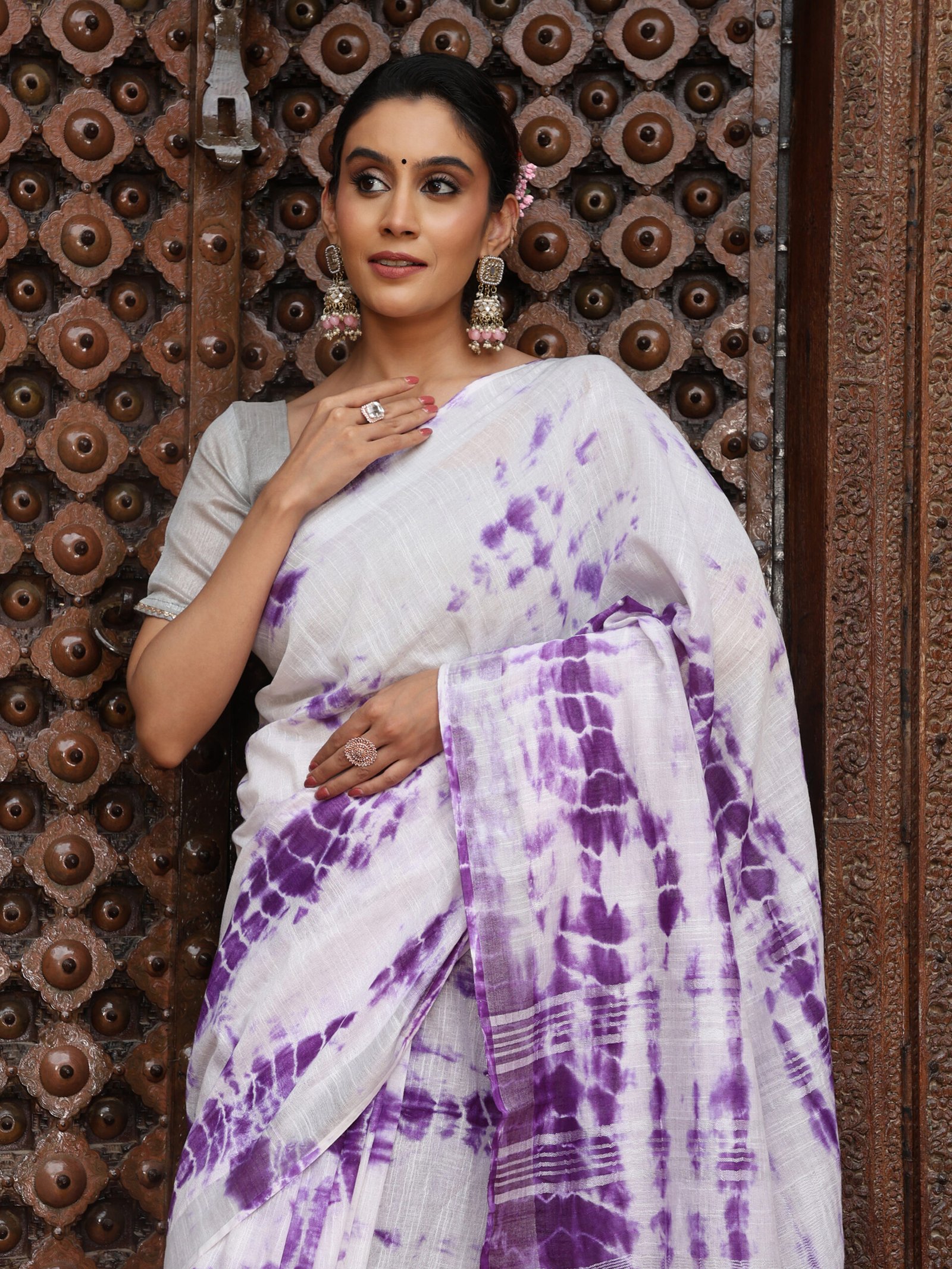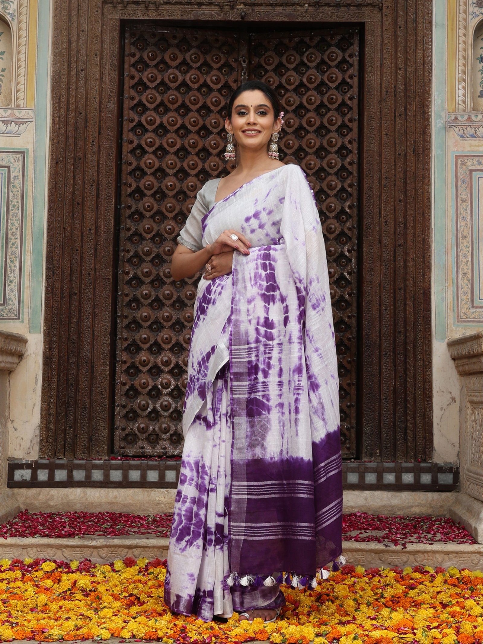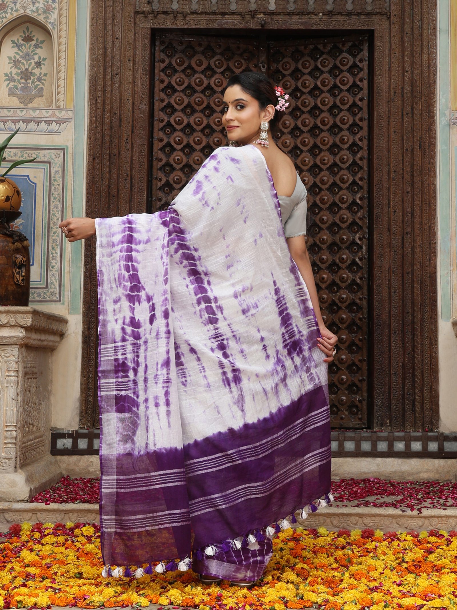 SKU:LINEN-004 Category:Sibori Saree Tag:SOLID